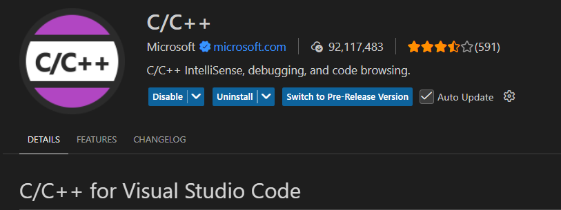 This extension adds C/C++ editing with Intellisense and debugging features to your coding environment.