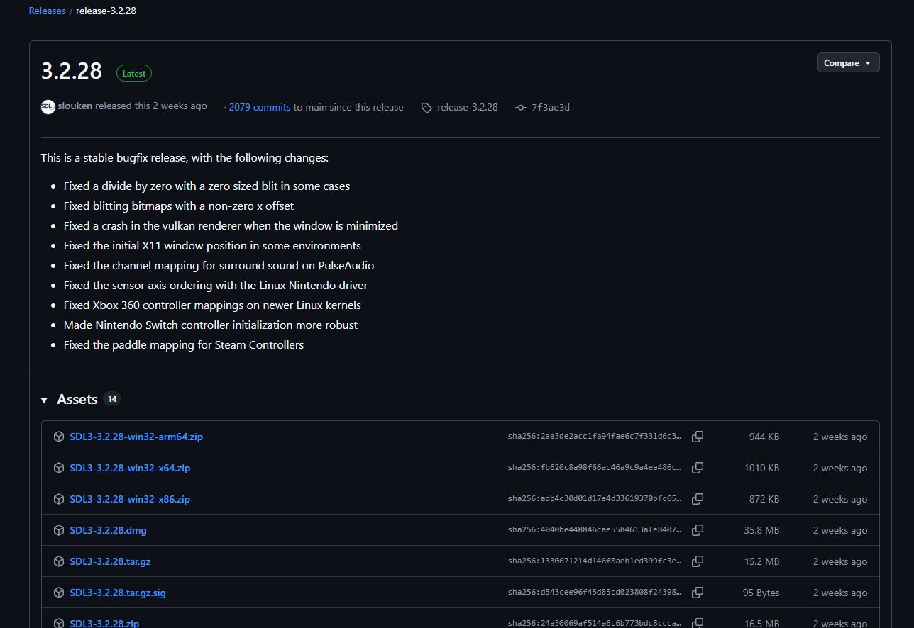 Linux: SDL3-3.2.28.tar.gz or use sudo apt install libsdl3-dev