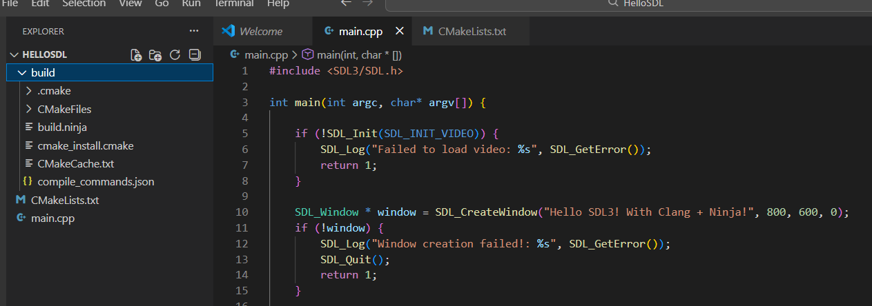 You may see a compiler error next to the #include <SDL3/SDL.h> line. Don’t worry. The next step will resolve any linking issues with other libraries like SDL3.