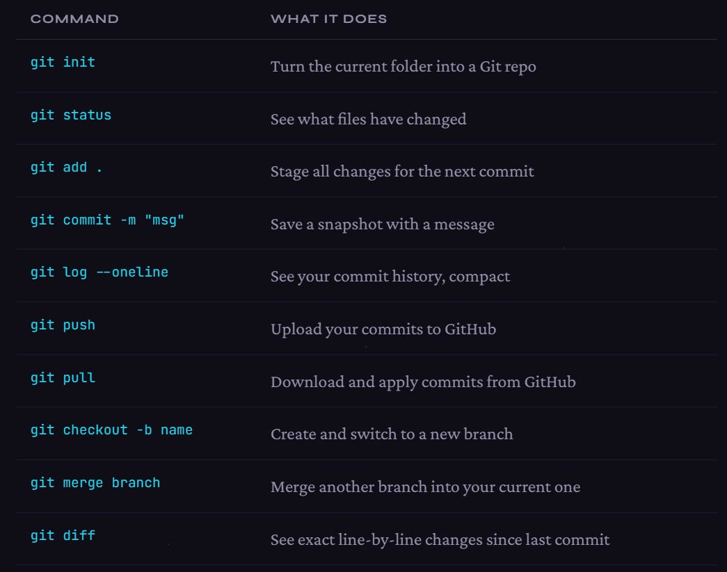 git pushFrom now on, your workflow will look like this: make changes → git add . → git commit -m "..." → git push.
